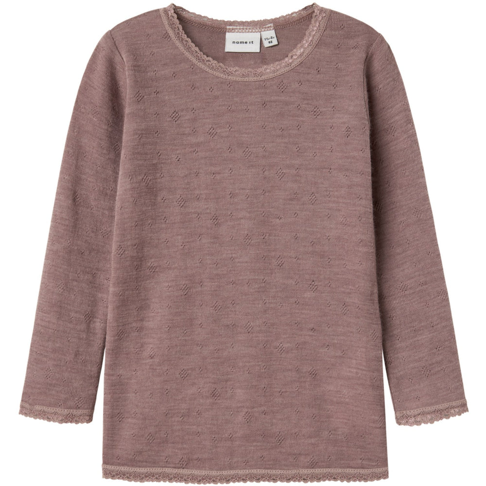 Discover the comfort and charm of the Name It Antler Nmfwang Wool Needle LS Top. Crafted from soft wool, this top ensures year-round comfort for your child. It features a unique needle drop design with dropped stitches that create adorable patterns. This blouse comes in a solid color and is styled with a round neck, long sleeves, and exquisite lace details for an extra touch of cuteness. Its regular fit promises easy wearability and movement. Perfect for daily wear or special occasions, it also simplifies care routines, keeping your little one stylish effortlessly.