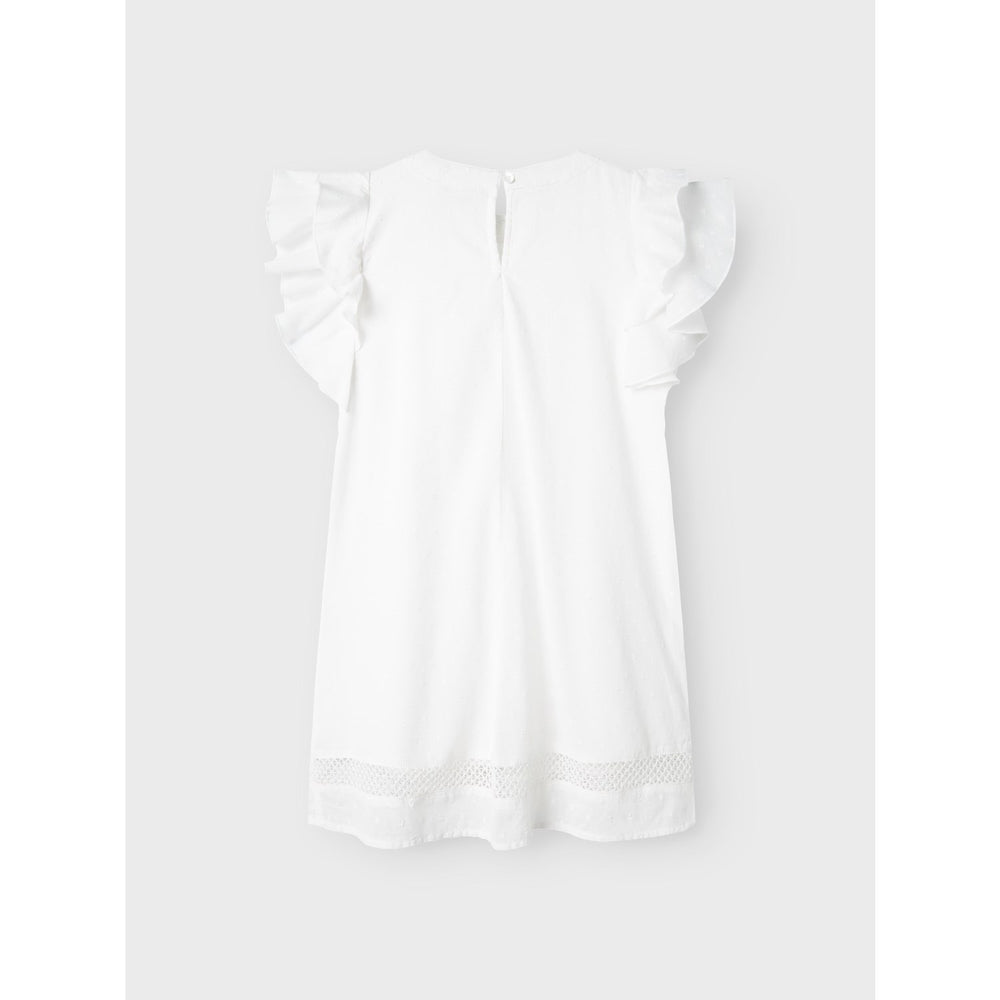 Dress your little one in the cheerful Bright White Faride Dress from Name It, perfect for celebrating the spring and summer seasons in style. Made from delicately woven fabric with a lightly textured, criss-cross pattern, this dress features a comfortable cotton lining and charming frills that add a touch of whimsy. Its round neck, short sleeves, and button and loop fastening ensure easy wearability and a secure fit. The timeless design and regular fit of this dress offer both freedom of movement and a fashionable flair, making it an essential addition to your child's wardrobe. Ideal for both daily wear and special occasions, it combines durability and ease of care, keeping your child looking their best.
