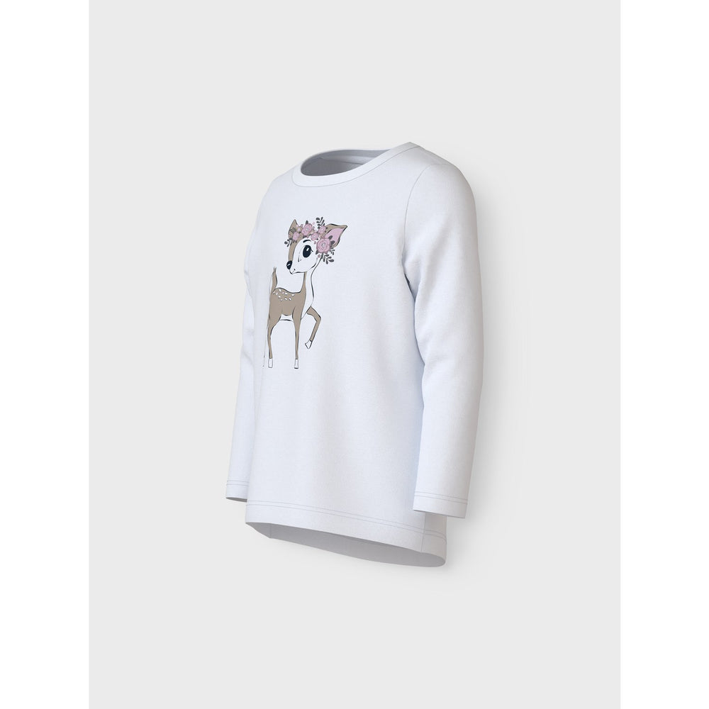 Introduce a touch of magic to your child's daily outfits with the Name It Bright White Flower Deer Vix Blouse. Crafted from jersey, this lightweight top is not only stretchable but also exceptionally soft on both the outside and inside, ensuring your child enjoys comfort and freedom of movement all day long. Featuring a charming round neck and long sleeves, this blouse is adorned with a dazzling glitter print alongside a soft rubber print, combining sparkle with a gentle feel. Available in standard fit, it is perfect for both everyday fun and special occasions. Easy to care for, this blouse will stay vibrant and maintain its shape wear after wear, making it a practical and stylish choice for any child's wardrobe.