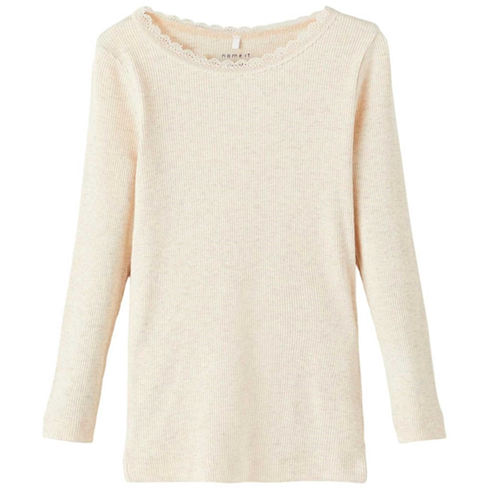 Super smart top for junior girls. This one in an elegant off-white caramel shade. The blouse has a round neck, long sleeves and a wrinkle effect at the shoulders.