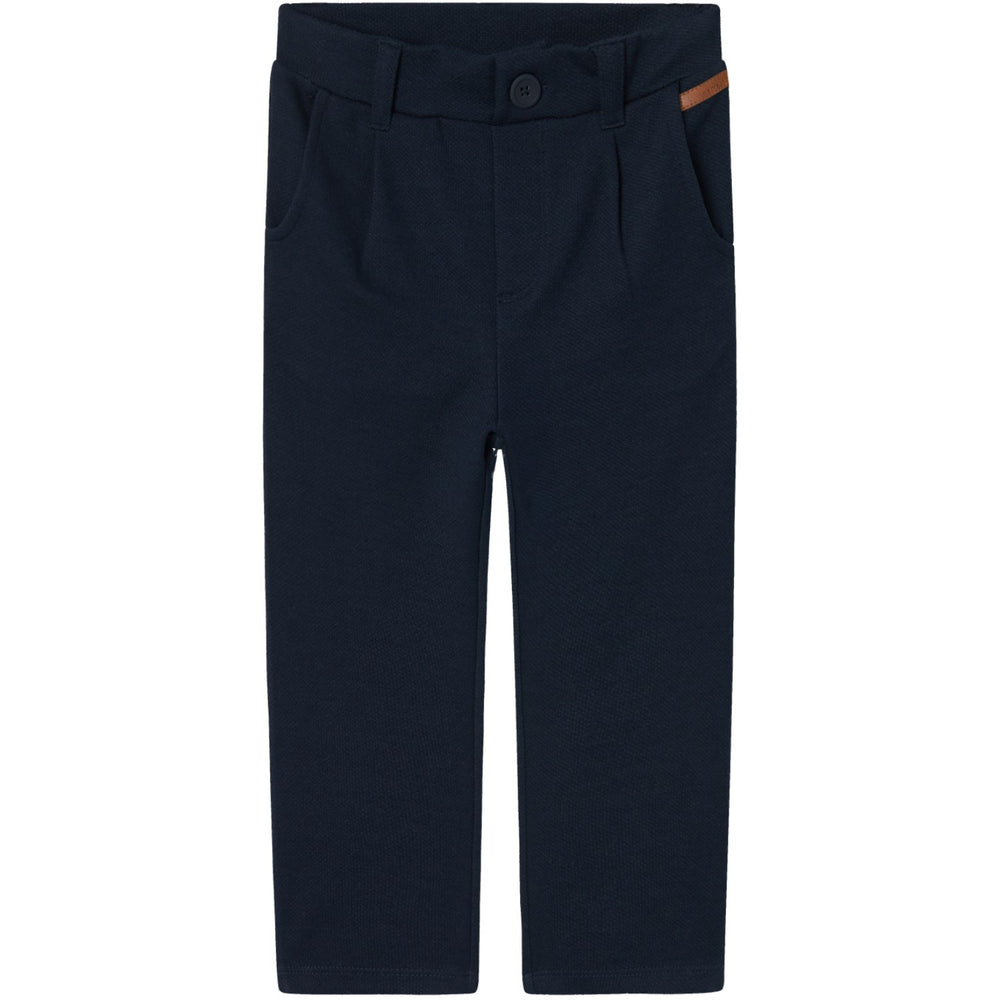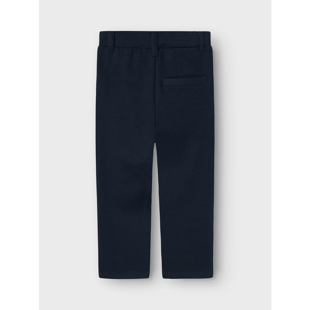 Introducing the Name It Dark Sapphire Robino Roxo Pants, the perfect addition to your child's wardrobe that blends style with comfort. Crafted from high-quality jacquard, these trousers boast a unique woven pattern that not only enhances their visual appeal but also gives them an elegant flair. The rich dark sapphire color is complemented by intricate detailing, making these pants versatile for various occasions.