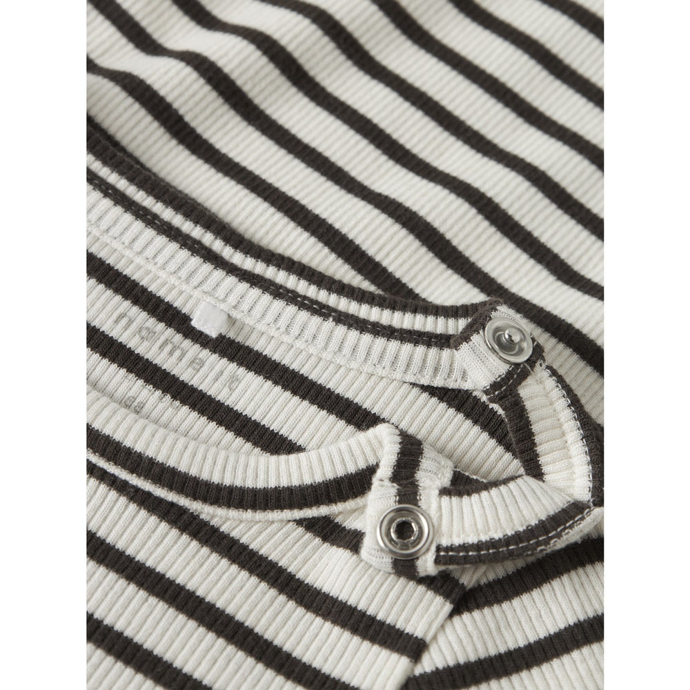 Dress your little one in the Name It Delicioso Nbnbani Ls Body Noos, a cozy piece perfect for everyday wear. Crafted from soft, stretchy rib knit with a classic striped pattern, this bodysuit ensures a snug yet comfortable fit. Featuring a convenient press stud fastening for easy changes, long sleeves for extra warmth, and a gentle O-neck design, it combines practicality with style. Ideal for keeping your child fashionable and comfy, this bodysuit is a must-have in your child’s wardrobe. Plus, remember to keep this garment away from fire for safety. Closure: Press Stud Materials: 57% Cotton - Organic, 38% Modal, 5% Elastane Materials and care: Wash with similar colors Washing instructions: Maximum Washing Temperature 40°C - Normal Process Extra: The main material in this product contains a minimum of 50% organic cotton. Organic cotton is grown without the use of harmful chemicals. Organic cotton farming protects natural resources and biodiversity.