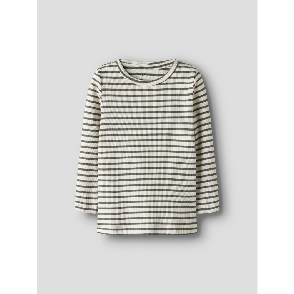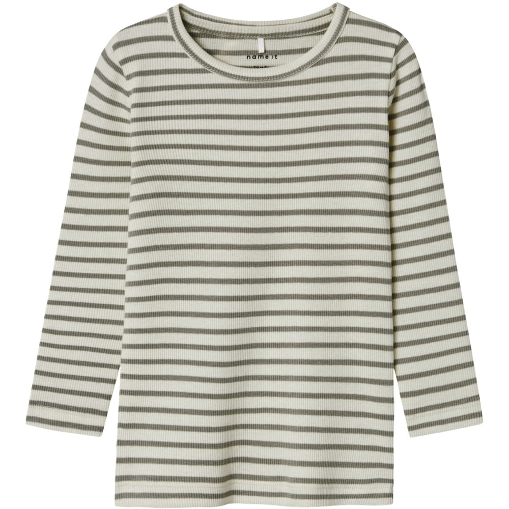 Introduce your little one to cozy style with the Name It Dusty Olive Nmnbani Ls Xsl Top Noos. Crafted from rib knit that features a vertical striped pattern, this top offers both durability and stretch for ultimate comfort and ease of movement. This charming piece flashes a slim fit, a classic round neck, and long sleeves with ribbed cuffs for a chic, snug feel. Ideal for cooler days, its timeless design and soothing dusty olive color add a dash of elegance to any child's wardrobe. Easy to care for, this top ensures your child stays comfortable and stylish, be it during play or at a family gathering. Fit: Slim Materials: 57% Cotton - Organic, 38% Modal, 5% Elastane Materials and care: Wash with similar colors Washing instructions: Maximum Washing Temperature 40°C - Normal Process- Extra: The main material in this product contains a minimum of 50% organic cotton. Organic cotton is grown without the use of harmful chemicals. Organic cotton farming protects natural resources and biodiversity