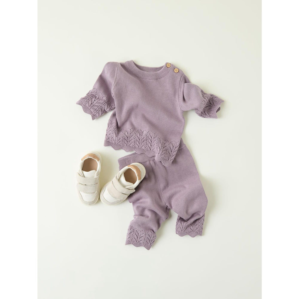 Perfect for teaming with a variety of tops, the Elderberry Timie Knit Pants are as functional as they are stylish, making them a must-have in your child's clothing collection. Watch your little one enjoy both comfort and style, whether at a playdate or a family gathering.