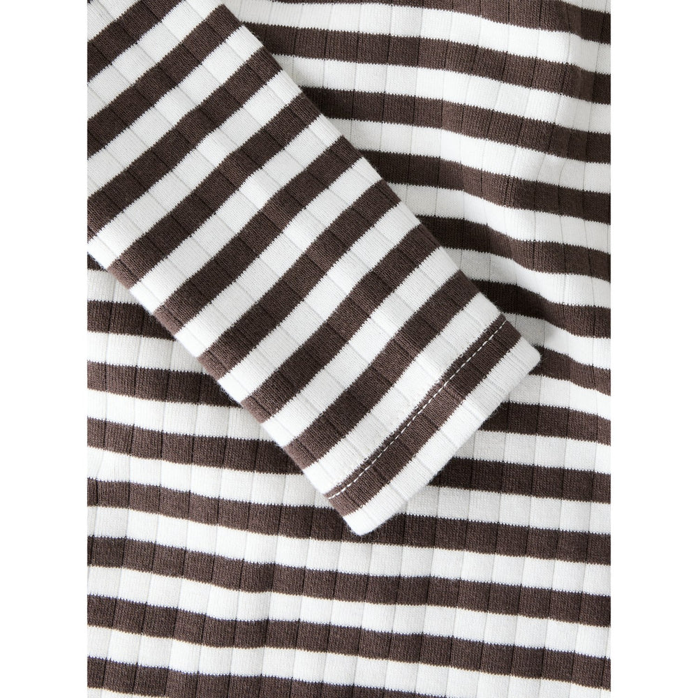 Discover the charm of the Name It Hot Fudge Nkfsuraja Xsl Ls Top Noos, ideal for both everyday flair and special events. This T-shirt features a rib knit with vertical stripes enhancing its classic aesthetic while ensuring a snug, comfortable fit. Crafted with long sleeves and a round neck, it's designed for comfort and style. Perfect for keeping your little one both cozy and chic, its slim fit tailors neatly to their movements, making it a practical choice for energetic days. Easy to care for, this top maintains its appeal wear after wear. A must-have for the trendy young wardrobe!