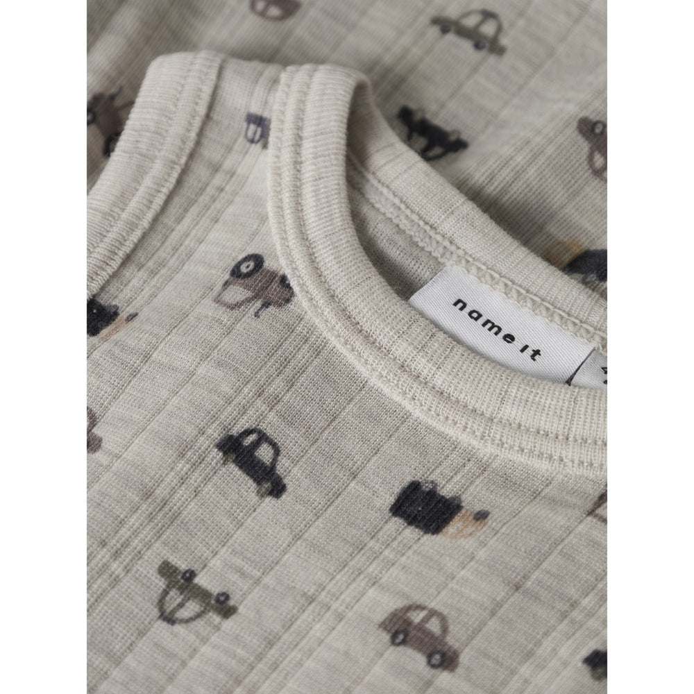 Introduce your little one to the charming world of the Name It Nacreous Cloud Small Cars Nbmwang Wool Needle Tank Body! This sleeveless bodysuit is crafted from soft, cozy wool, perfect for keeping your child comfortable throughout the seasons. It features a unique needle-drop design with delightful dropped stitches that create distinctive patterns, adding a dash of cute to your child's wardrobe. The round-neck cut ensures easy wearability, and the convenient press stud fastening makes dressing a breeze. Ideal for layering or wearing solo, this bodysuit blends style, comfort, and practicality seamlessly.