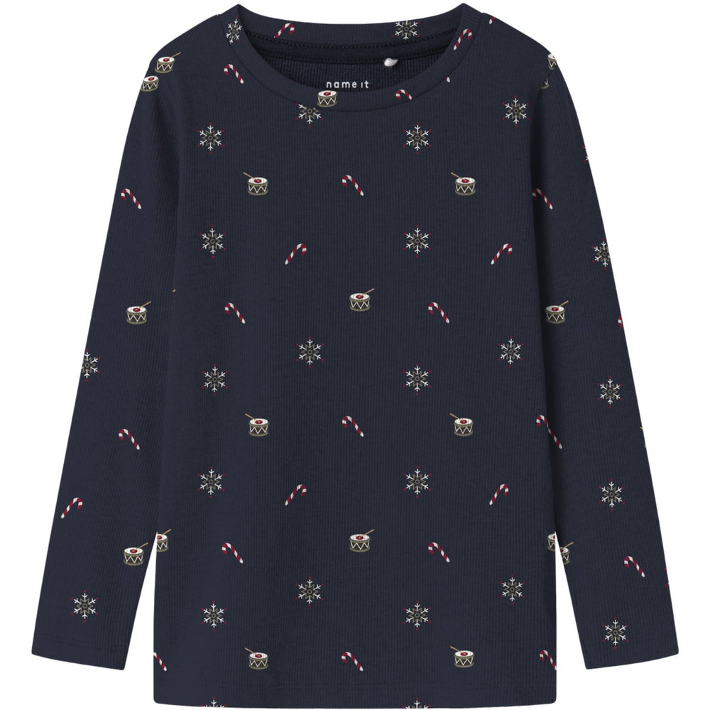 Introducing the Name It Navy Blazer Nmnroko Xsl Ls Top! Designed with the merry spirit of Christmas, this charming blouse features a delightful allover print that truly captures the joy of the season. Crafted from rib knit material, it boasts a vertical stripe pattern and excellent elasticity, ensuring not just timeless style but also a snug and comfortable fit. The round neck and long sleeves add a classic touch to this slim-fit top, making it a perfect addition to your child's wardrobe. Easy to care for, it promises to keep its charm through countless festive occasions. Give your little one the gift of style and comfort this holiday season! Fit: Slim Materials: 57% Organic Cotton, 38% Modal, 5% Elastane Extra: The main material in this product contains a minimum of 50% organic cotton. Organic cotton is grown without the use of harmful chemicals. Organic cotton farming protects natural resources and biodiversity.