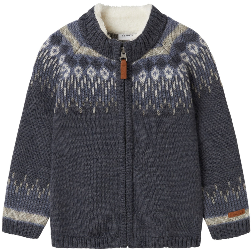 Introduce a touch of elegance and comfort to your little one's ensemble with the Name It Ombre Blue Iceland Nmmwriss Wool LS Knit Cardigan. Crafted from soft, cozy wool, this knitted cardigan features an enchanting jacquard woven pattern that combines aesthetics with an air of sophistication. Designed in a captivating ombre blue, it boasts a snug turtle neck and long sleeves to keep your child warm throughout the seasons. A practical zip fastening and a stylish badge add functional detail while ensuring easy wearability. With its regular fit, this cardigan promises a comfortable fit for all-day play. Perfect for both casual outings and special occasions, it's a versatile addition to any child's wardrobe.