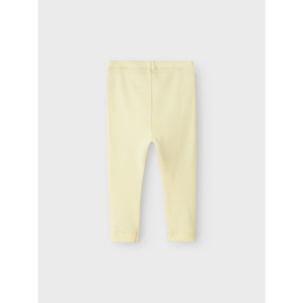 Brighten up your child's wardrobe with the Name It Pastel Yellow Kab Leggings Noos. Crafted in a cozy rib knit with vertical striped patterning, these leggings offer optimal elasticity ensuring a snug yet comfortable fit. The elastic waistband promises easy dressing and a seamless silhouette. Designed for regular fit, they’re both stylish and practical for all-day wear. Machine washable, these leggings are easy to care for, making them an essential addition to your child's outfits. Please note, keep away from fire for safety. Perfect for pairing with a variety of tops for a trendy, everyday look!