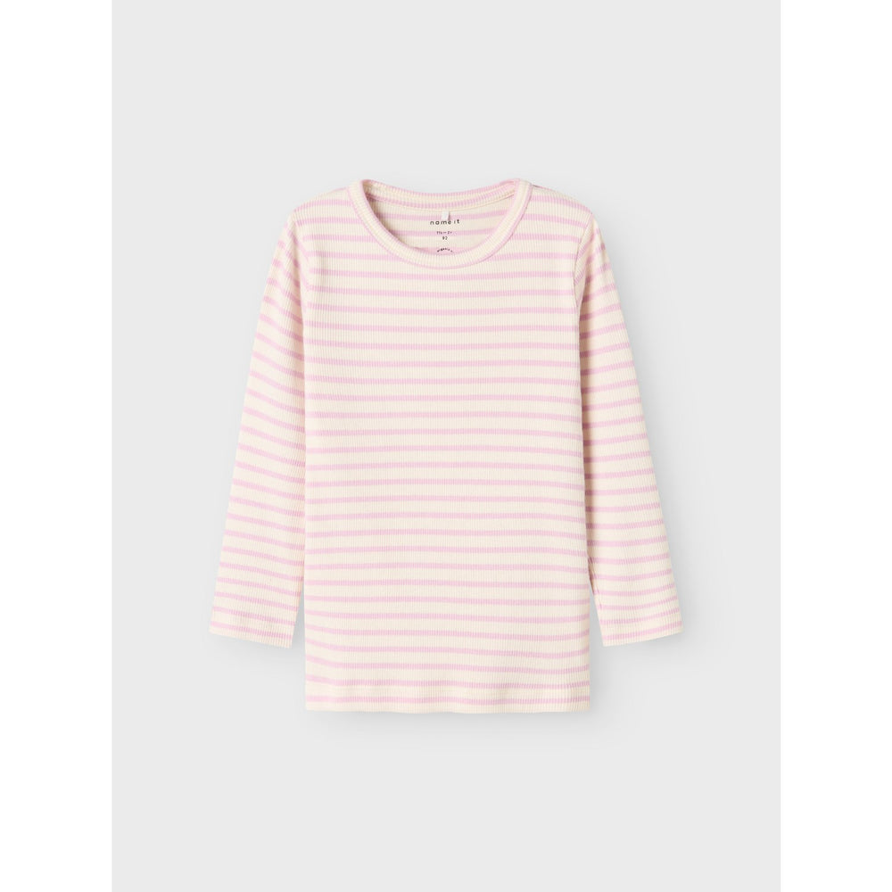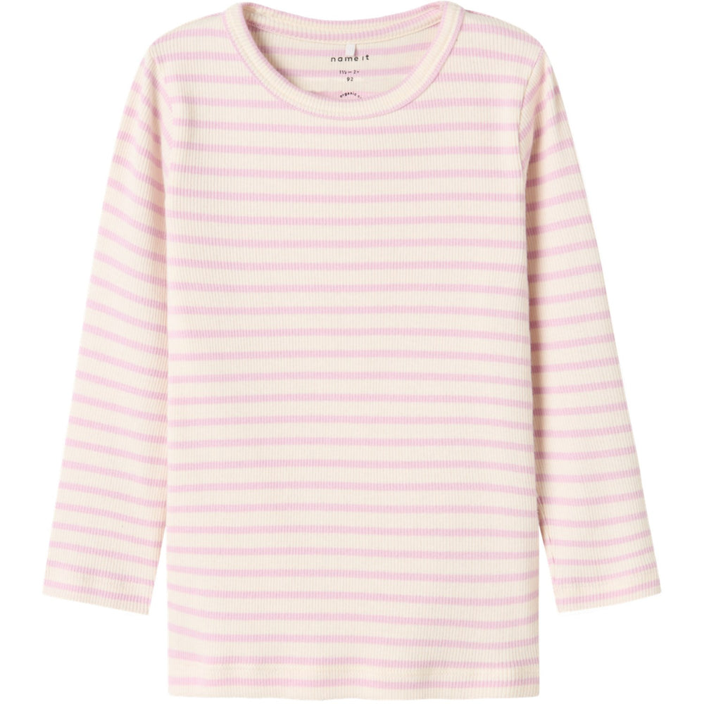Discover the charm of the Name It Winsome Orchid Bani Blouse Noos, perfect for dressing up your little one! Crafted with a rib knit that features a vertical striped pattern, this top offers great elasticity ensuring a snug yet comfortable fit. This lovely blouse is styled with a round neckline, long sleeves, and ribbed cuffs, creating a delightful and timeless look. Its slim fit enhances the chic silhouette, making it a versatile addition to any child's wardrobe. Easy to care for, the blouse combines both fashion and functionality, ideal for daily wear and special occasions alike. Fit: Slim Materials: 57% Cotton - Organic, 38% Modal, 5% Elastane Materials and care: Wash with similar colors Washing instructions: Maximum Washing Temperature 40°C - Normal Process-