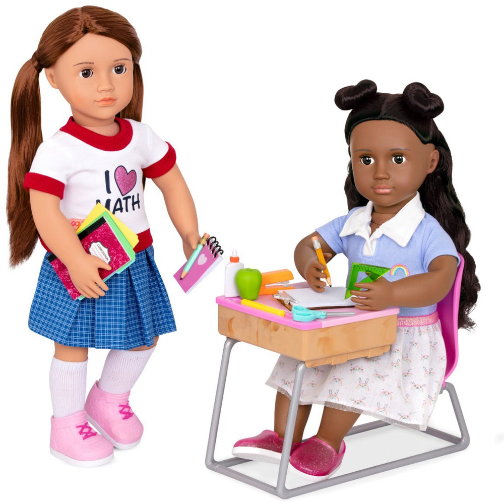 Introduce your child to the charming Our Generation School Desk, a delightful accessory set for any Our Generation doll. This interactive toy features a foldable desk packed with essentials such as colorful charteque folders, a variety of stationery, and even a green apple for a touch of fun. Designed with children's safety in mind, each piece is made from child-friendly materials and is suitable for kids aged 3 and up. The compact design ensures easy storage, while the variety of accessories boosts engagement and offers educational value, enhancing creative expression and organizational skills. Perfect for imaginative play at home or on-the-go, it's a wonderful gift that promises to entertain and educate.