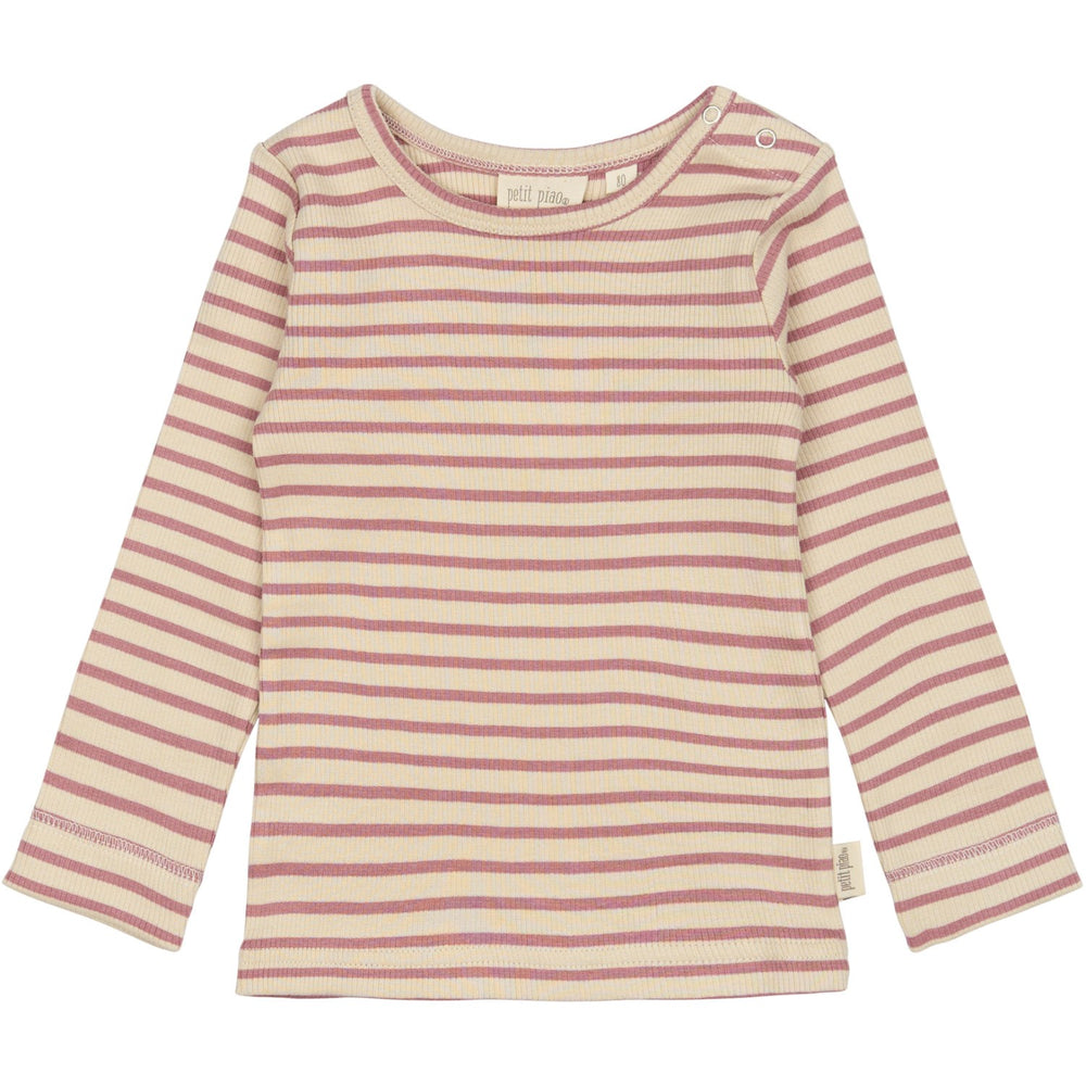 Petit Piao Nostalgic Rose/off White T-shirt L/S Modal Striped