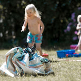 Equipped with a sand/dirt escape hole, it prevents extra carry weight, ensuring ease of maintenance. The inclusion of an adjustable shoulder strap enhances portability, while the simple pull-on rope function makes packing up quick and effortless, perfect for busy families on the go. Ideal for children of various ages, this mat promotes an active, engaging, and educational environment wherever you unfold it. Plus, with every purchase, a tree is planted, supporting a green and healthy planet for future generations to enjoy.