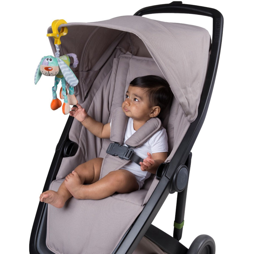 - Easy attachment to the pram or stroller with the clip