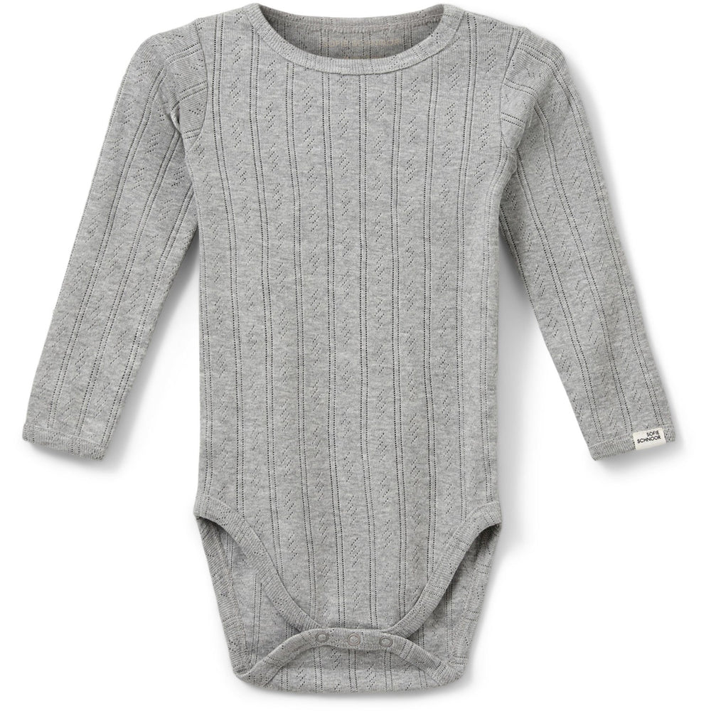 This charming bodystocking from Sofie Schnoor is perfect for your little darling! Made from soft, grey-melange ribbing, it's both comfortable and stylish. It has long sleeves and a round neckline for maximum comfort, while the practical snap buttons at the bottom make dressing and changing diapers a breeze. Made of 100% organic cotton, it ensures that your baby is wrapped in nature's best. A wonderful everyday essential that is perfect for play and naps.