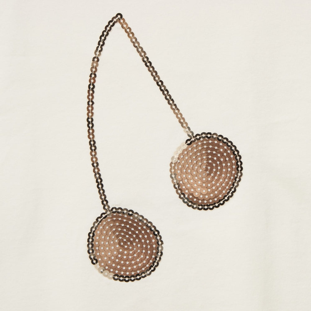 Make everyday life a little more festive with this charming T-shirt from Sofie Schnoor. This off-white T-shirt is adorned with a glittery cherry sequin print that adds a touch of glamour to your little one's outfit. With its round neckline and short sleeves, it ensures a comfortable and relaxed fit, perfect for play and fun. Made from soft 95% cotton, it's both comfortable and easy to wash. A must-have in every young trendsetter's wardrobe!