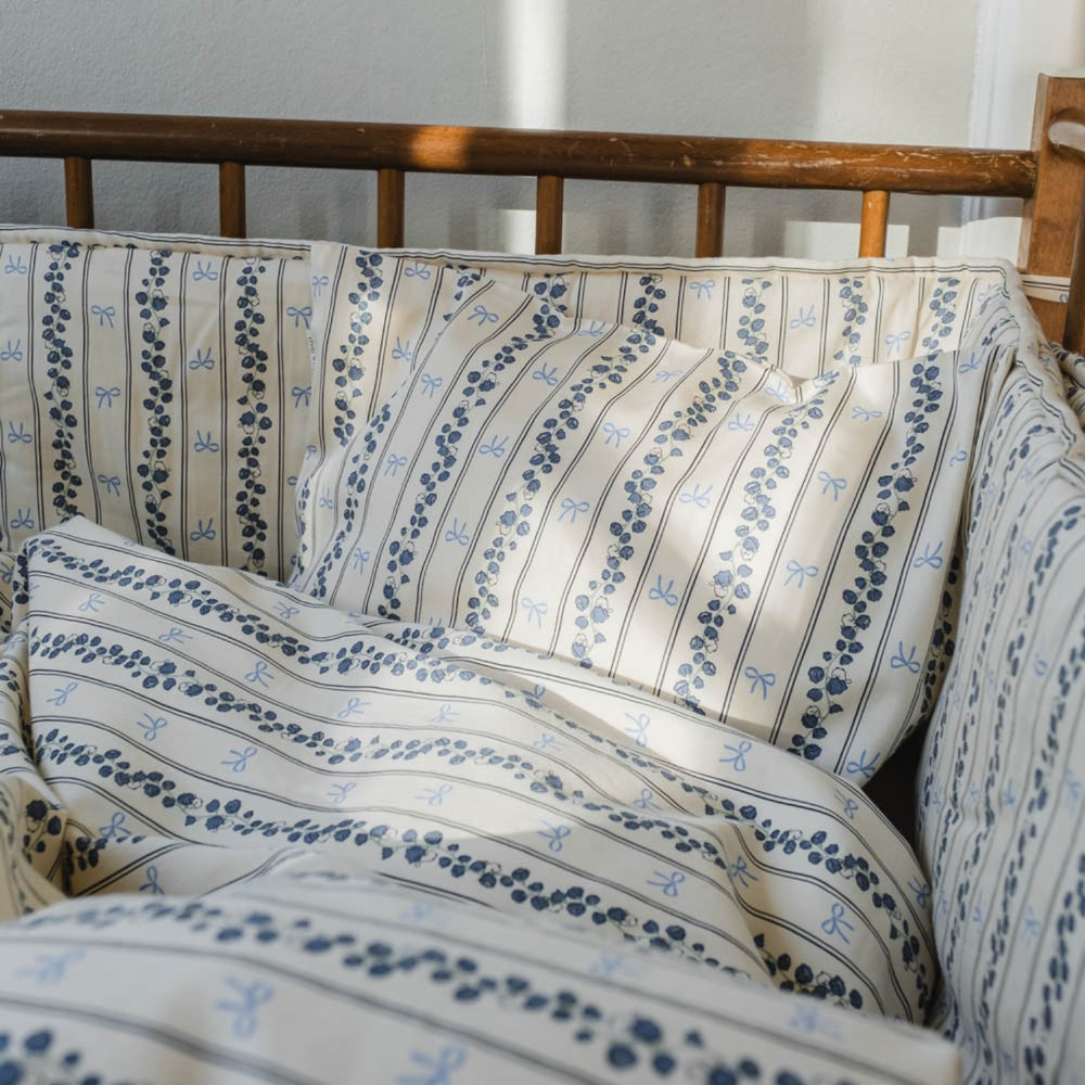 Featuring adjustable strings, the bumper offers flexible attachment, adapting easily to various bed sizes. Made from eco-friendly recycled polyester, it's not only soft but also durable, standing up to frequent washing.