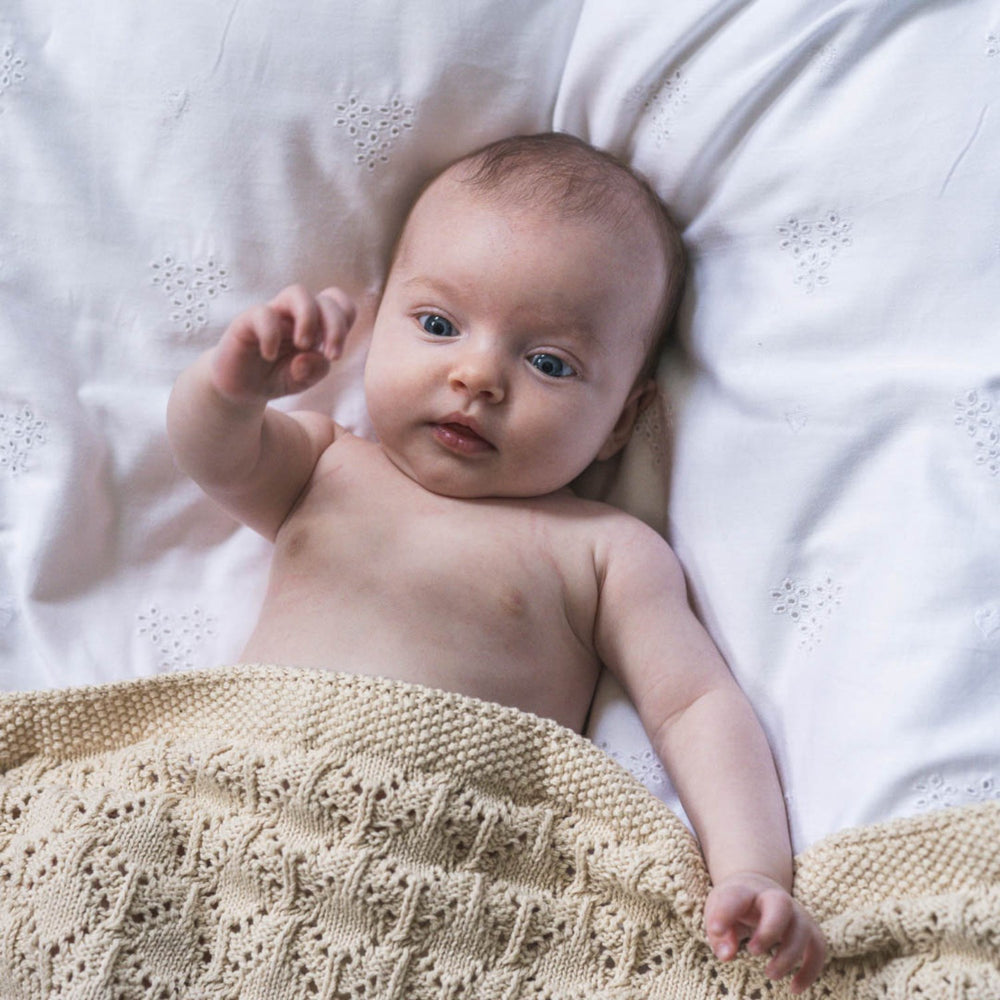 Introducing the Birch Kala Knitted Blanket from That's Mine, a perfectly cozy addition to your child's nursery. Crafted from 100% organic cotton, this snug blanket, measuring 85x85cm, ensures your little one's comfort and safety. Its soft texture and warm embrace not only offer a delightful snuggle but also transform naptime into magical adventures. The compact design makes it easy to fold and store, promoting a neat and organized space. Ideal for everyday use, this charming knitted blanket brings a touch of cuteness and endless calming comfort to your baby’s day. Materials: 100% Organic cotton Washing instructions: Wash cold (max 30°C)