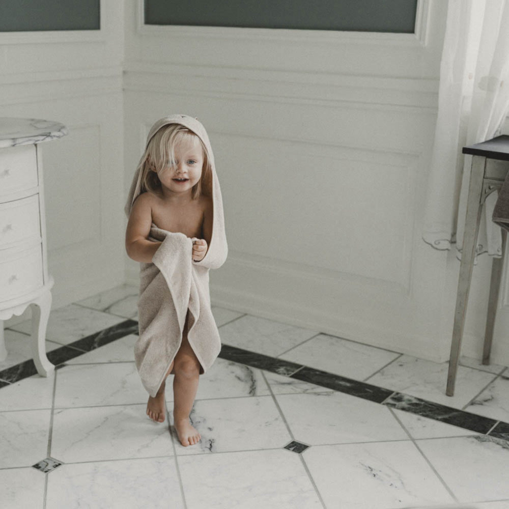 Introduce a touch of whimsy and warmth to your child's bath time with the That's Mine Bunny Mivo Hooded Towel. Crafted from 100% soft organic cotton terry cloth, this towel not only offers superior comfort and absorbency but is also gentle on delicate skin. Designed with fun and functionality in mind, the prominent bunny ears add an element of play while making it easier for little ones to wrap up and dry off. Perfect for maintaining coziness after a bath, it encourages independence as children love to wear it, enhancing both their enjoyment and bathing experience. Easy to care for, this towel promises durability and effortless maintenance for everyday use. Materials: 100% Organic cotton terry Washing instructions: Do not dry clean, Do not tumble dry, Do not iron, Wash cold (max 30°C), Shrinkage Up to 3%