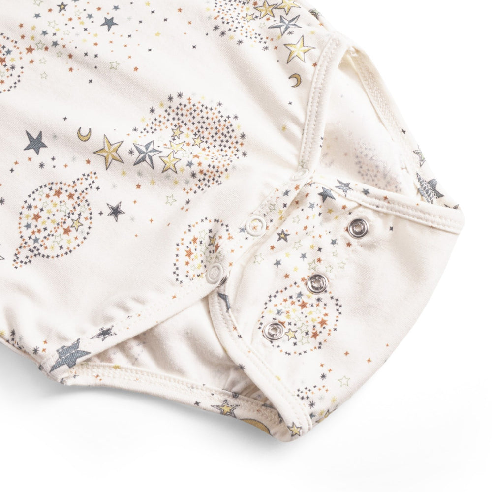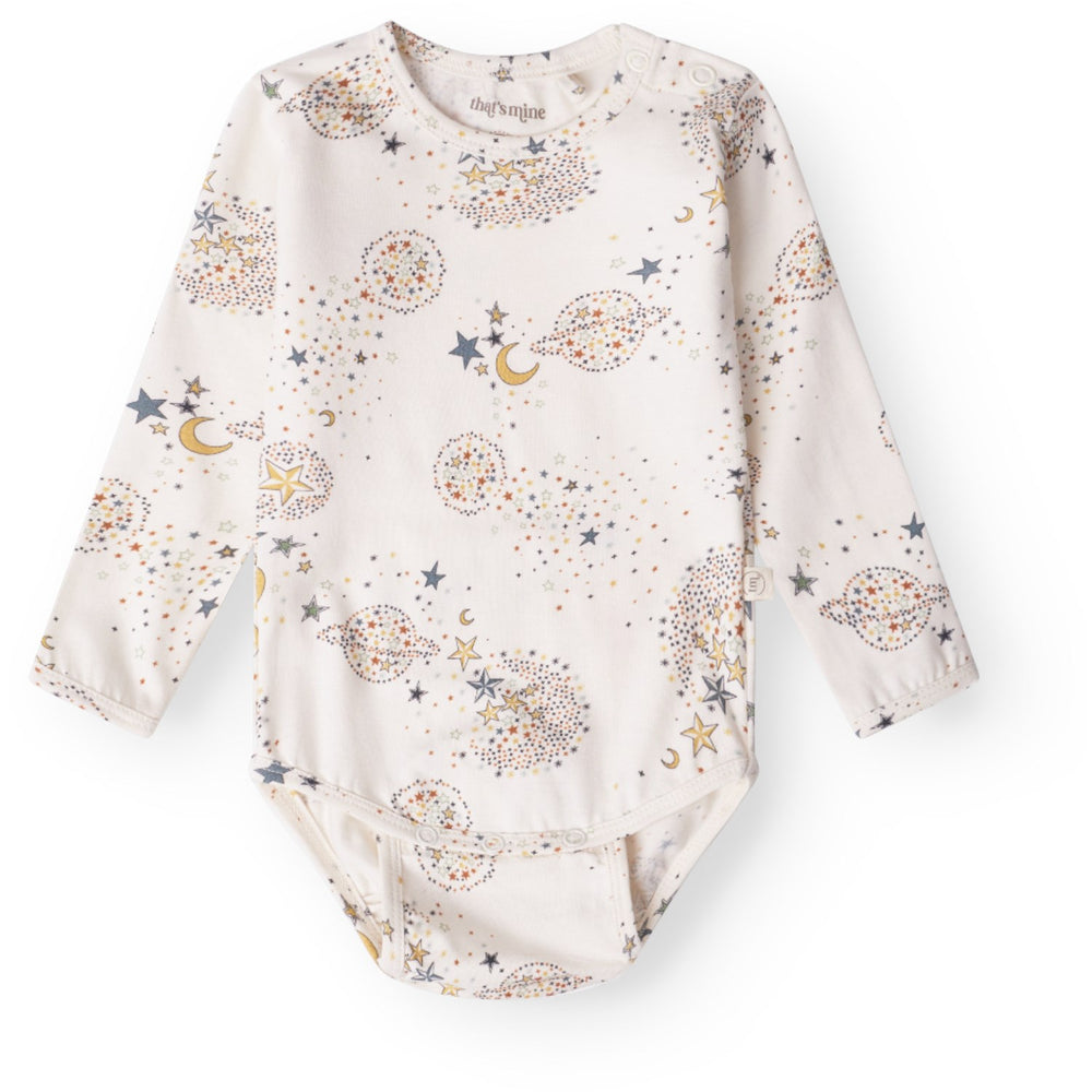 Introduce your little star to unparalleled comfort with the That's Mine Million Stars Ellis Bodystocking. Crafted from the softest blend of cotton and modal, this delightful bodysuit features eye-catching prints that exude charm and cheer. Perfectly adjustable with two rows of metal buttons, it offers a customizable fit as your child grows. The gentle fabric ensures easy wear and care, ideal for both lively play and soothing rest. A blend of coziness and adorable style, this bodystocking is an essential in any infant's wardrobe. Materials: 48% Organic cotton, 47% Modal, 5% Elastane Washing instructions: Wash dark colors separately