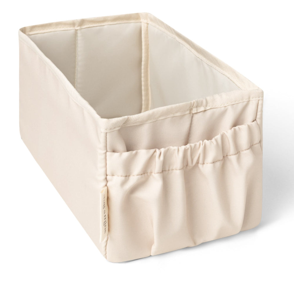 Discover the convenience of the That's Mine Peyote Lucy Nursing Organizer, expertly designed for your child's room. This changing storage box offers a streamlined way to neatly organize changing essentials such as diapers, creams, and cloths with its spacious main compartment and additional end pocket. Measuring 32 cm in length, 15 cm in width, and 13 cm in height, it’s crafted for both functionality and space efficiency - fold it flat when not needed. Durable and easy to clean, simply wipe with a damp cloth. A stylish, practical solution that ensures everything is at hand for a smoother changing time. Materials: 100% recycled polyester Materials and care: Do not wash, Do not iron, Do not tumble dry, Do not dry clean Measurements: Product height (cm) 13, Product length (cm) 32, Product width (cm) 15 Washing instructions: Wipe clean with damp cloth