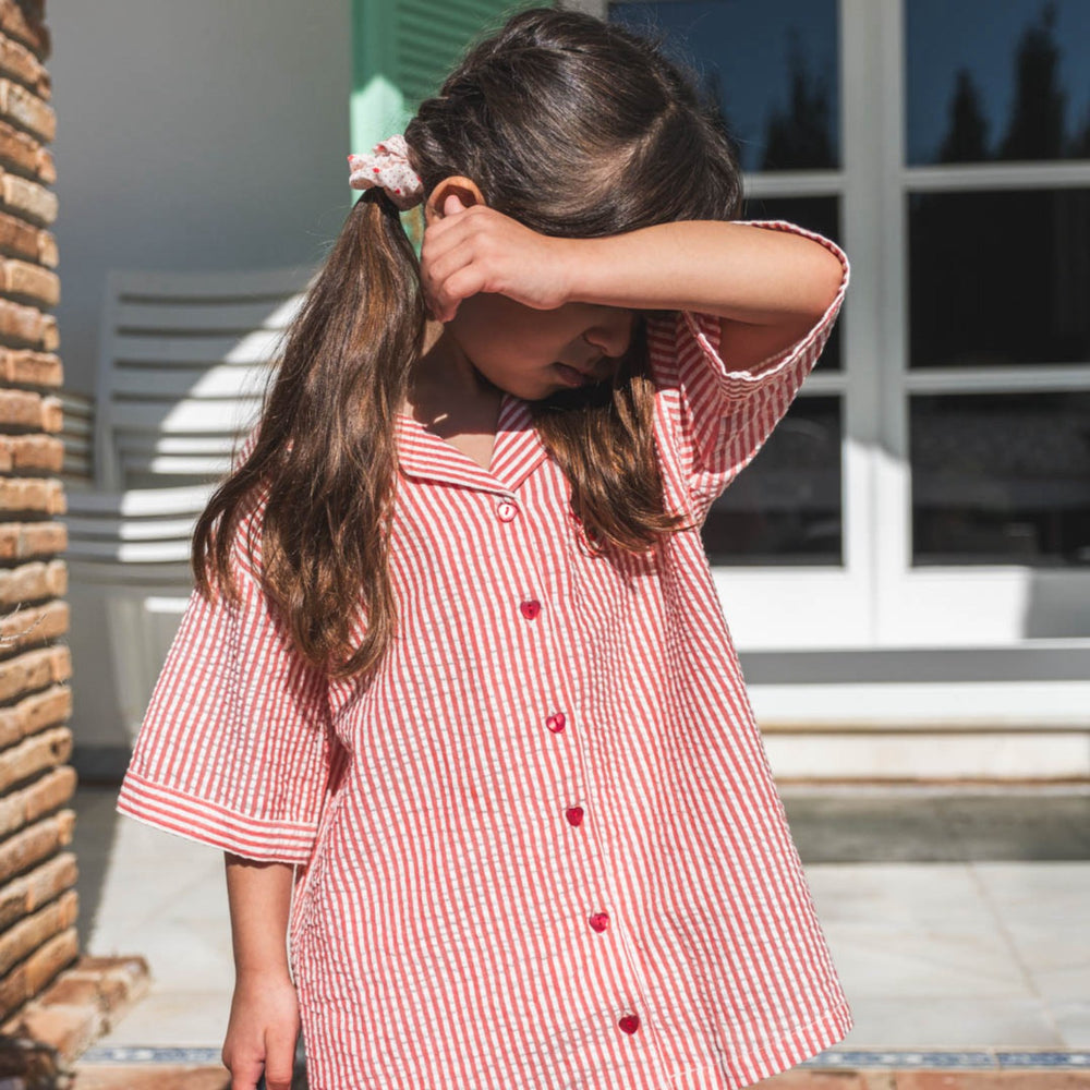Discover the charm of the That's Mine Red Stripe Ino Shirt, perfect for your little one's wardrobe. Crafted from soft seersucker, this loose-fitting shirt ensures comfort with a playful design. It features a lovely little patch on the chest and bold red stripes, making it ideal for any casual occasion. Pair it effortlessly with the Isa shorts for a stylish, coordinated look. Easy to care for, it upholds its appearance wash after wash, enabling both fun and function for children's daily adventures. Materials: 100% Organic cotton Washing instructions: Wash warm (max 40°C)