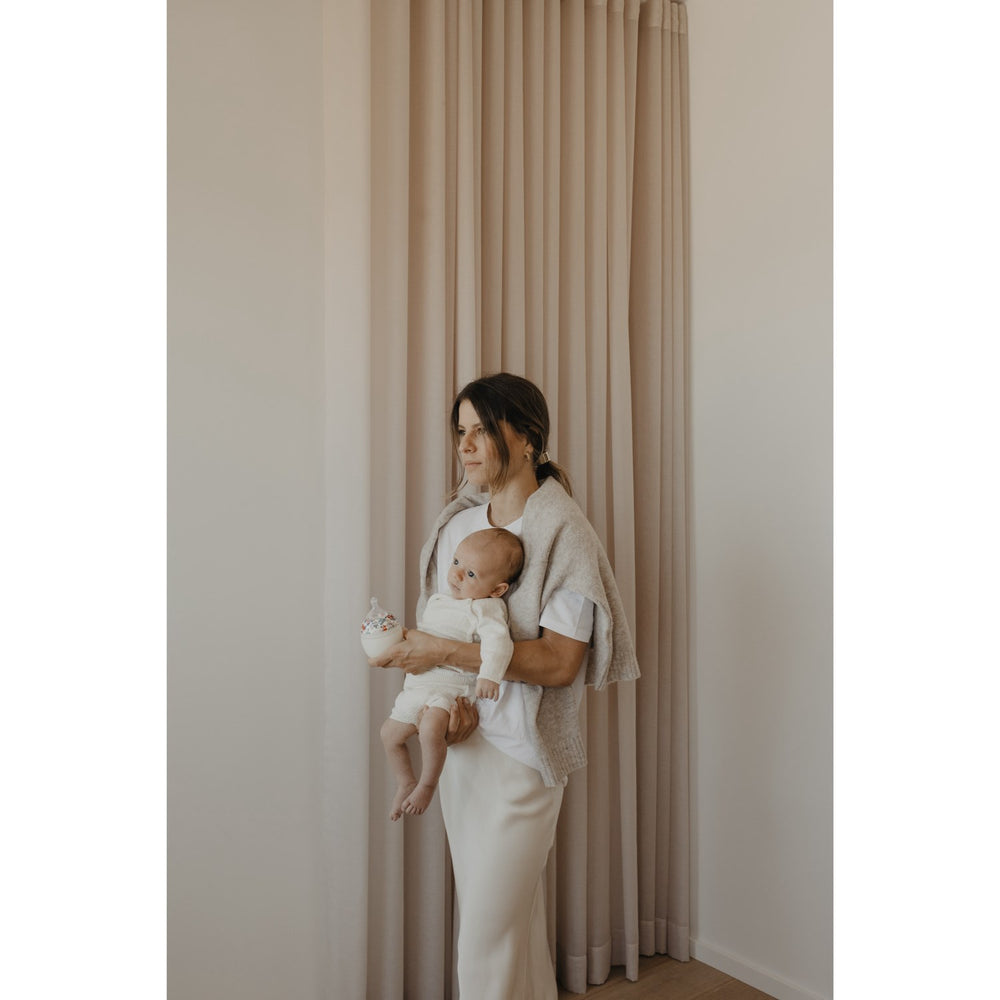 Discover the innovative That's Mine X Élhée Bittersweet Collab Baby Bottle, perfect for your little one's mealtimes. This 150 ml bottle is constructed with child-safe materials, boasting essential certifications for your peace of mind. Ergonomically designed for easy handling by both parents and infants, it ensures comfort during feeding. Its multipurpose nature allows for convenient storage and transforms feeding into a joyful experience, promoting engagement with playful designs. Easy to clean and maintain, this bottle is an excellent choice for modern, safety-conscious parents. Materials: 100% Medical grade silicone Washing instructions: Hand washing recommended for longer product life. Use an organic, fragrance-free washing-up liquid. Leave to dry on a drainer or clean cloth. Volume: 150 ml