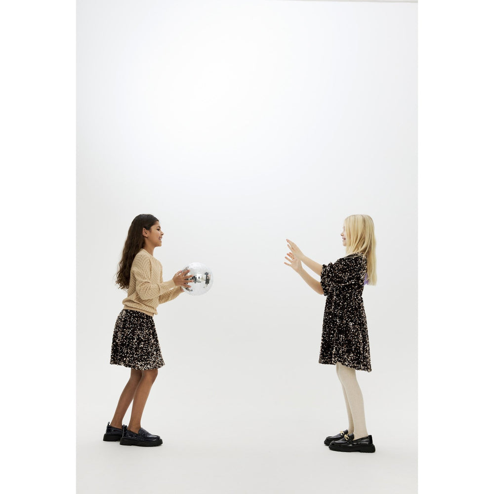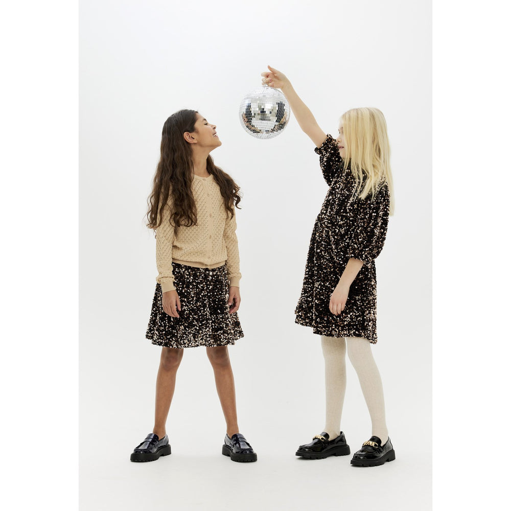 The dress comes in a bold black hue, adorned with intricate sequin detailing that sparkles with every move. Its thoughtful design includes a comfortable fit that accommodates various body types, ensuring that every child feels fabulous wearing it. Moreover, the durable fabric stands up to frequent wear and washing, making it an ideal choice for both special events and everyday play.