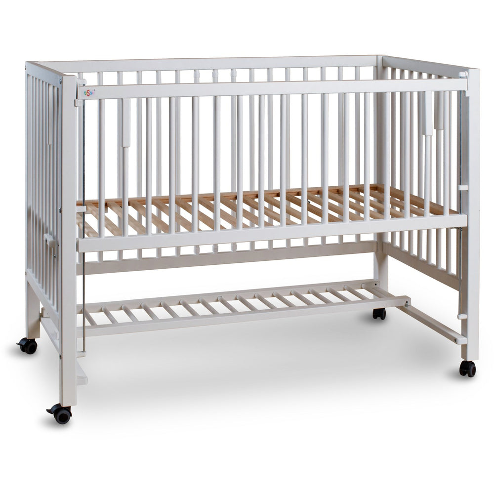 Welcome to the perfect starting point for your little one's dreamland adventures, the tiSsi® White Lacquer Hajo Children's Bed. Crafted from solid beech and finished in a sleek white lacquer, this bed ensures both safety and functionality. It features a unique adaptable design that evolves with your child from infancy up to 6 years old. From a comforting close-by sleeper to a full-sized children's bed, the Hajo provides outstanding flexibility with easy-to-remove side bars that encourage independence as your child grows.