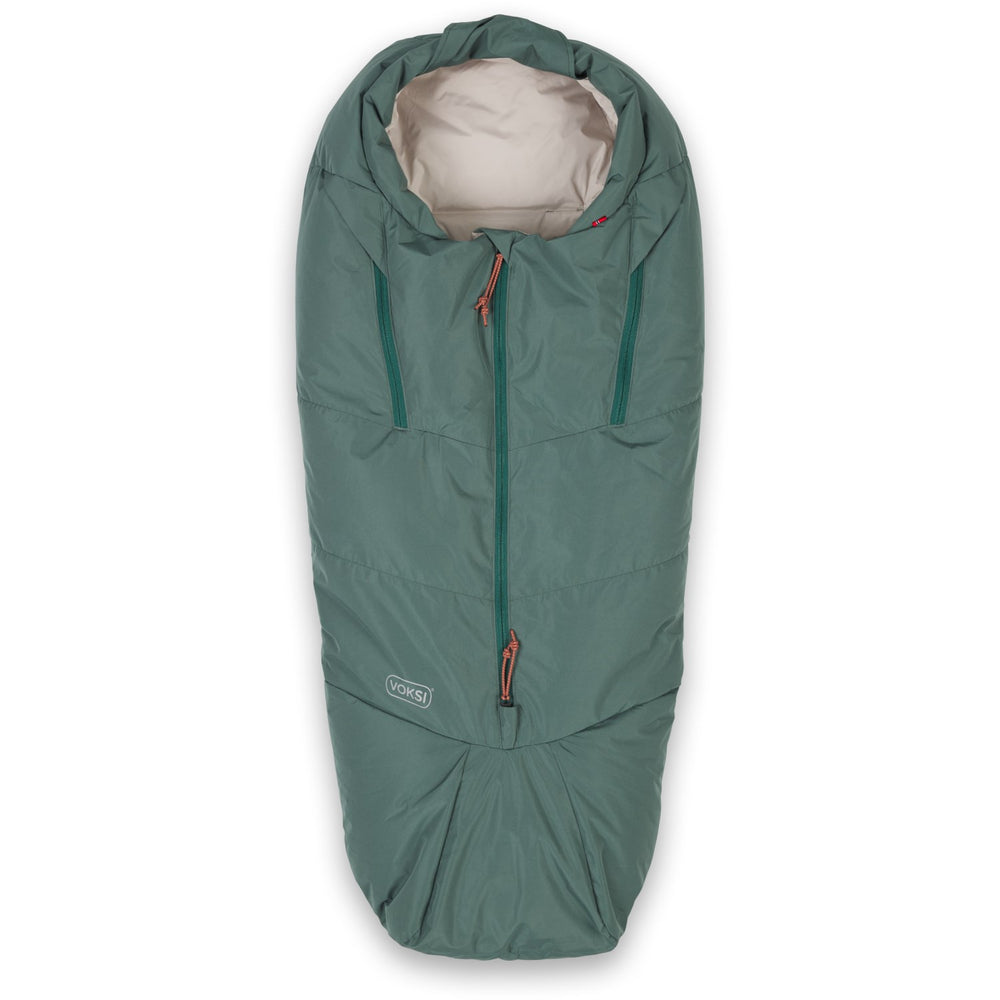 Notably, the bag features arm openings allowing babies to explore their environment while remaining snug. The adjustable compression cord at the foot end accommodates growing children, making this sleeping bag a practical choice for use up to about 3 years of age. It's perfect for various baby carriers including strollers, bike trailers, and baby joggers, providing versatility and ease of use. The Voksi® Adventure is a comfortable, secure, and stimulating choice for your child’s outdoor adventures.