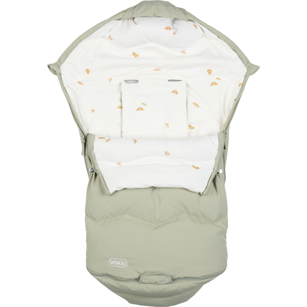 Simple to maintain and durably crafted to withstand frequent use, this sleeping bag is indispensable for parents seeking a safe, comfortable, and easily transportable solution for their child’s outdoor adventures. Whether it's a brisk walk in the park or a long journey, the Voksi® Misty Green Explorer makes sure your child stays warm, relaxed, and stimulated in a secure environment.