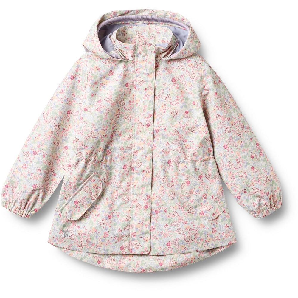 Brighten up your child's wardrobe with the Wheat Cool Sky Flowers Jacket Ada, a gem for braving unpredictable weather with style! This charming A-shaped jacket is crafted from 100% recycled polyester, boasting both environmental friendliness and exceptional durability. With dimensions surrendering to comfort, it features adjustable elements like the waist drawstring and a versatile, detachable hood to ensure a perfect fit for active youngsters.