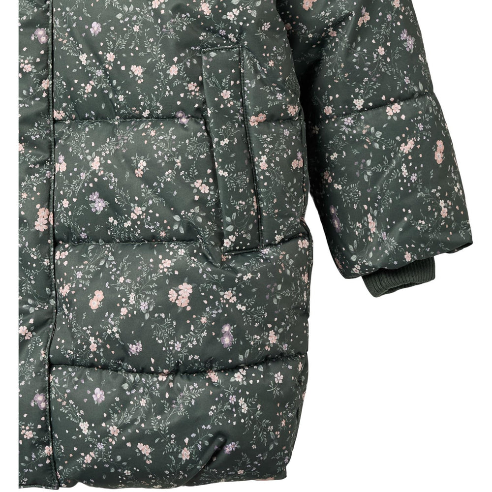 Cozy up your little one in Wheat's Forest Lake Checked Flowers Puffer Coat Yrsa, a long, A-shaped jacket crafted for chilly autumn and winter adventures. Made entirely from 100% recycled polyester, this eco-friendly coat features a dazzling hand-drawn floral pattern, reflecting the brand’s commitment to stylish, sustainable childrenswear. Designed with both functionality and fashion in mind, the jacket boasts adjustable elements like an elastic waist and a detachable hood, ensuring a snug, customizable fit.
